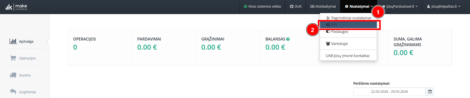 Norint gauti LIVE aplinkos (produkcinės) raktus, turite būti mūsų klientas ir juos rasite prekybininko portalo skiltyje Nustatymai -> API: